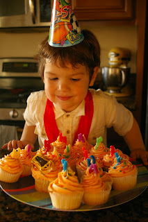 Our little Eyan turned 4! Although we celebrated his birthday at our big family birthday bash, we still wanted to have a little get together on his actual birthday. We was thrilled to eat his favorite thing, cupcakes. And orange his favorite color! A very talented young woman that goes to our church has a little catering business and she made these darling cupcakes for Eyan. His little smile is so contagious. We are so grateful to have him in our family.